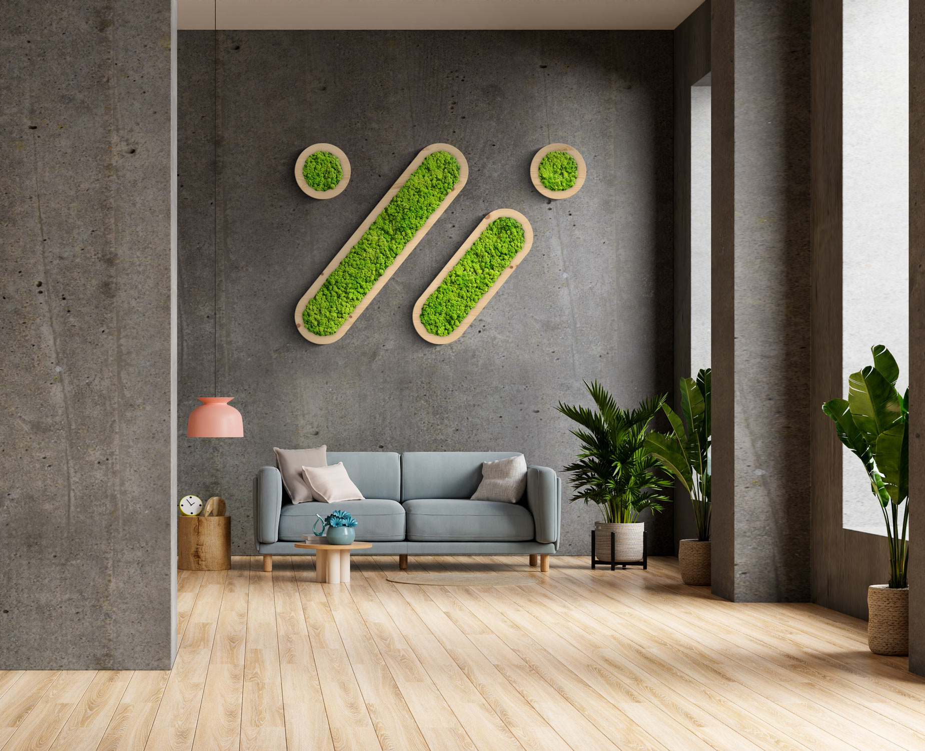Logos und Schriftzüge mit Moos liegen voll im Trend und können in verschiedensten Ausführungen und Varianten geliefert werden - für Ihre Innenraumwerbung - Kennzeichnungen von Räumen - oder als Deko. Mit unserem Island – und Wald Moos holen Sie sich Ruhe und Entspannung direkt aus der Natur in Ihre Innenräume. Wir schaffen höchste Qualität für jede Raumsituation: Für unsere Logos verwenden wir stabilisiertes Moos (konserviert nach einem speziellen Verfahren) welche permanente visuelle Strahlkraft für Ihre Wände hervorruft. Die Kombination Holz & Moos zeichnet sich durch seinen warmen Charakter und seiner Natürlichkeit aus. Je nach Objekt ist unser Produkt eine sehr schöne Alternative für die Gestaltung Ihrer Ladenlokalität. Thematisch passt es sehr gut in Büros, Bio-Märkte, die Gastronomie, Agenturen, holzverarbeitende Betriebe, Praxen aller Art, die Hotellerie, Friseurläden sowie Fitnessstudios oder in die Kosmetikbranche. Natürlich nicht zu vergessen im privaten Wohlfühlbereich.