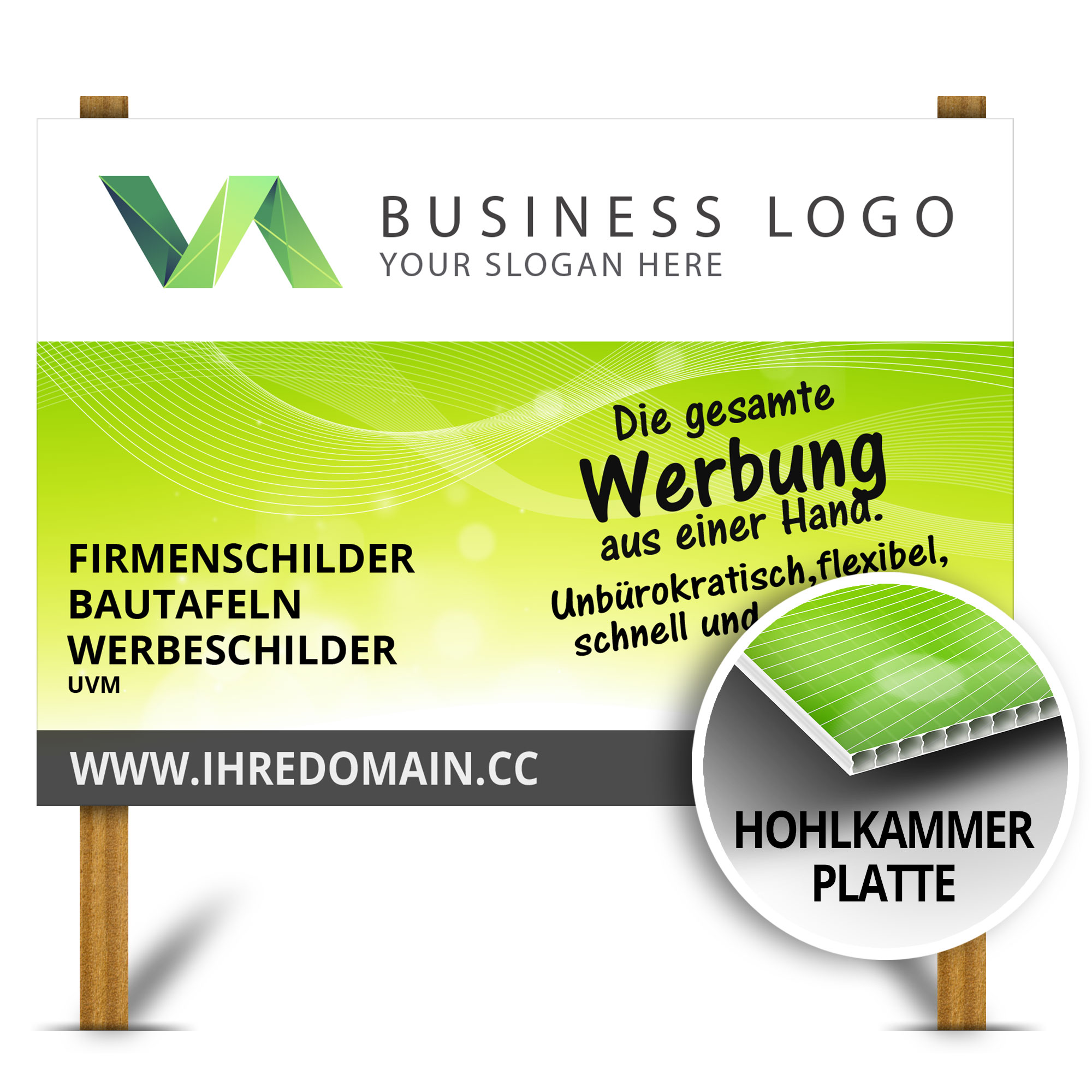 Direkt bedrucktes Hohlkammerplatten-Werbeschild.